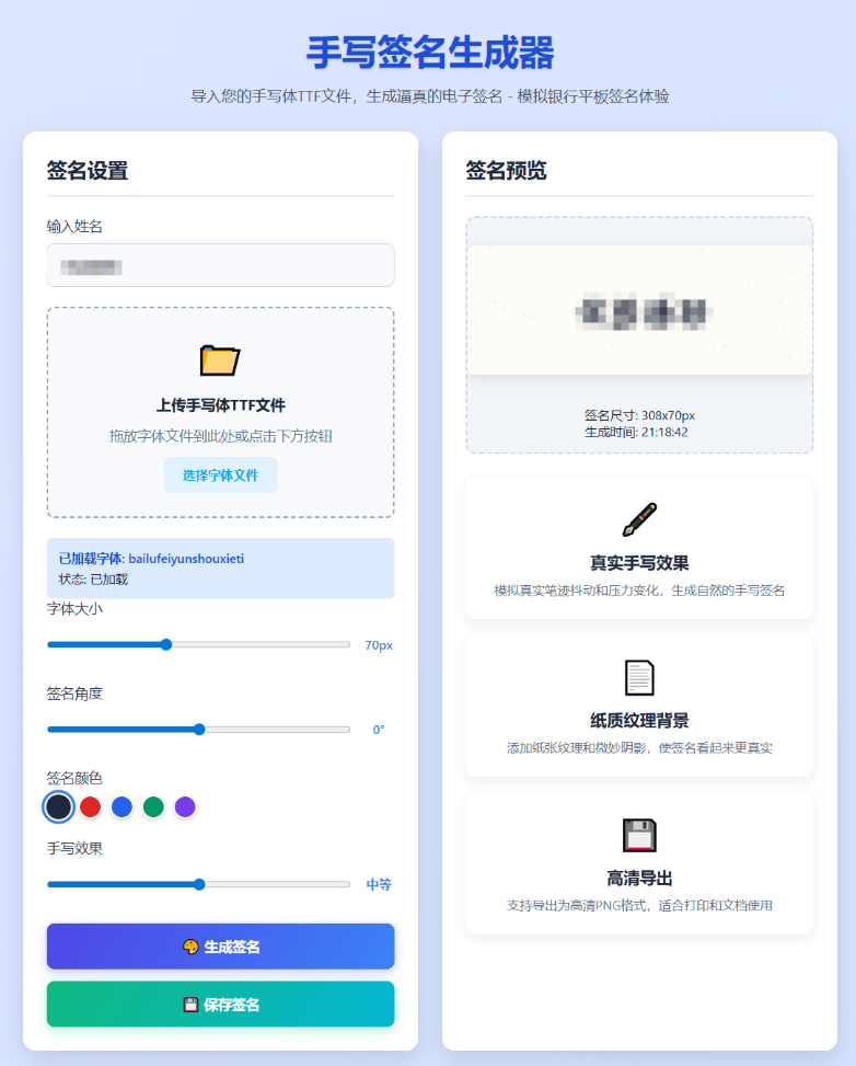 在线手写签名生成器 – 纯HTML仿真手写字迹签名工具